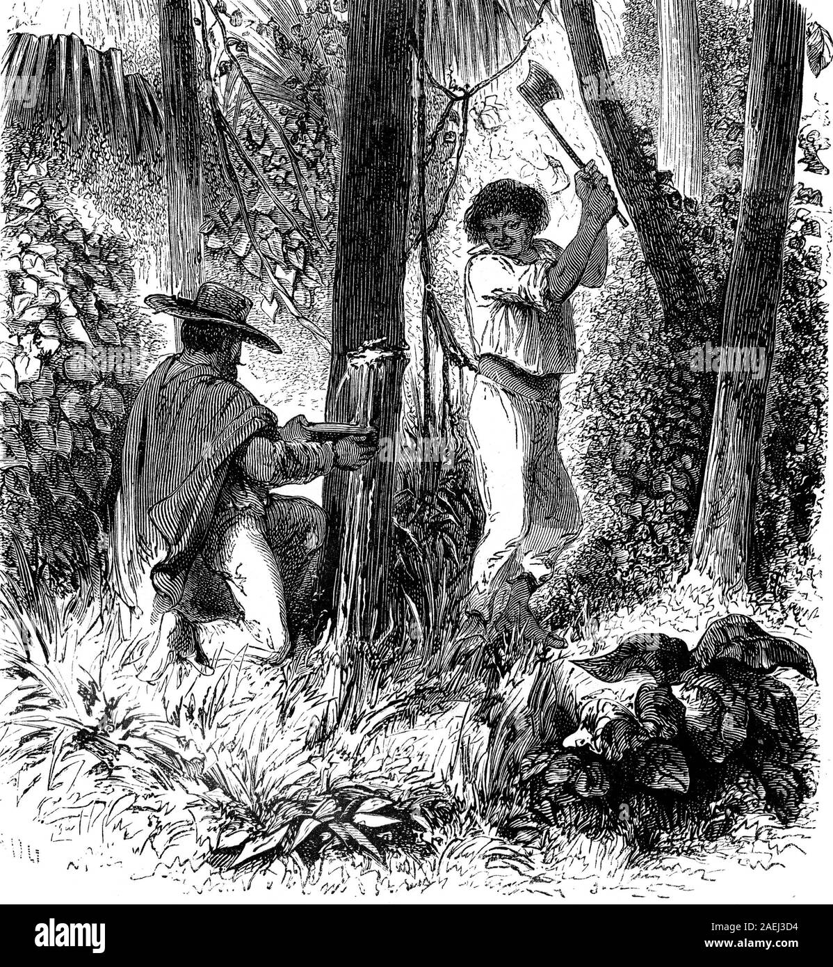 Latex Harvesting Hevea Brasiliensis The Para Rubber Tree Sharinga Tree Seringueira South America Latexernte Galactodendron Utile Humb Kautschukernte Am Kautschukbaum Hevea Brasiliensis Siphonia Brasiliensis Sudamerika Reproduction Of An